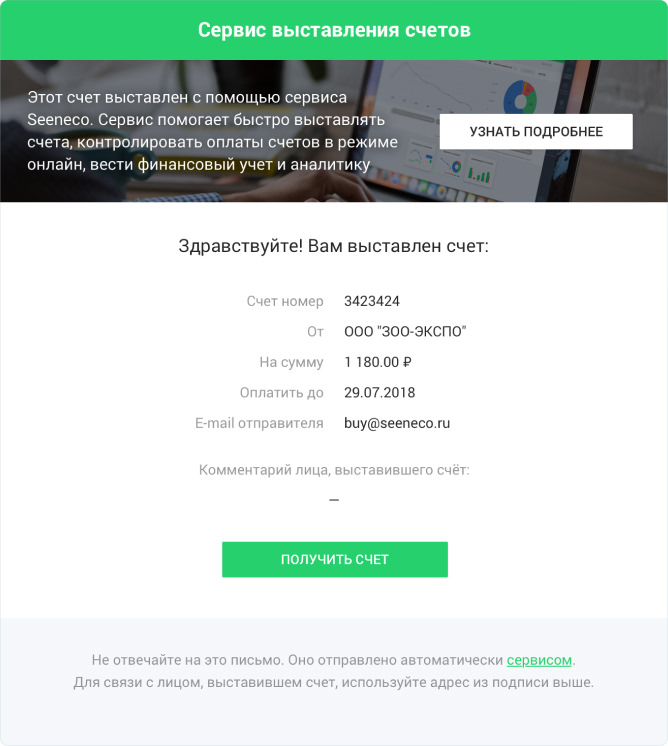 Формирование и отправка красивых счетов с возможностью моментальной оплаты — БЕСПЛАТНО!