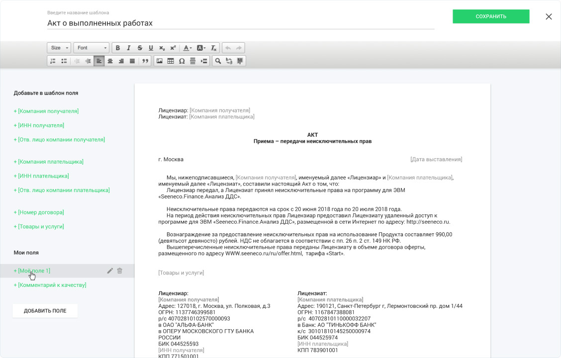 - Приложение поможет быстро выставлять счета, контролировать их оплату, а вашим клиентам быстро платить по счету