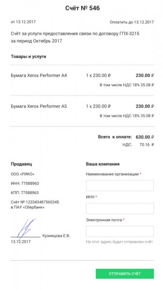 Покупателям можно не звонить менеджерам. В один клик на сайте они получат счет и перейдут к его оплате.